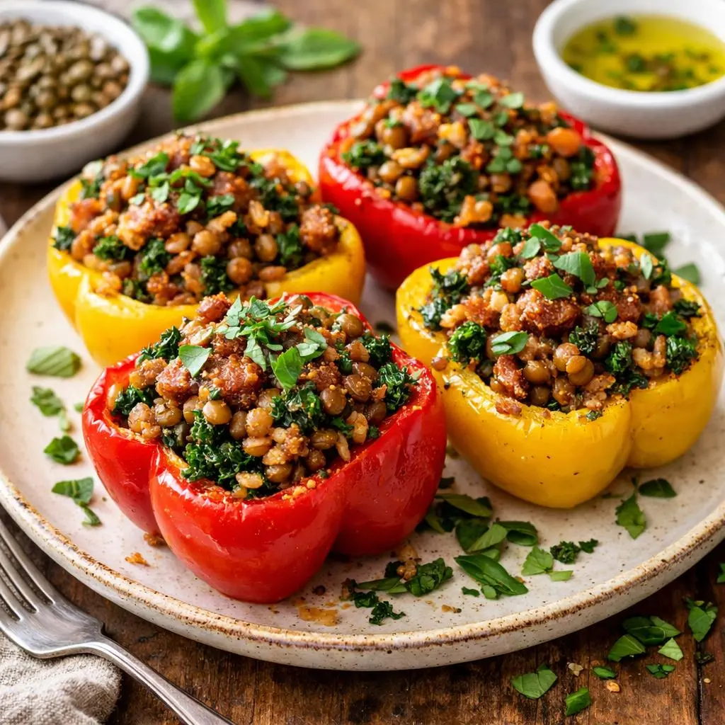 Curly Kale & Lentil Stuffed Peppers